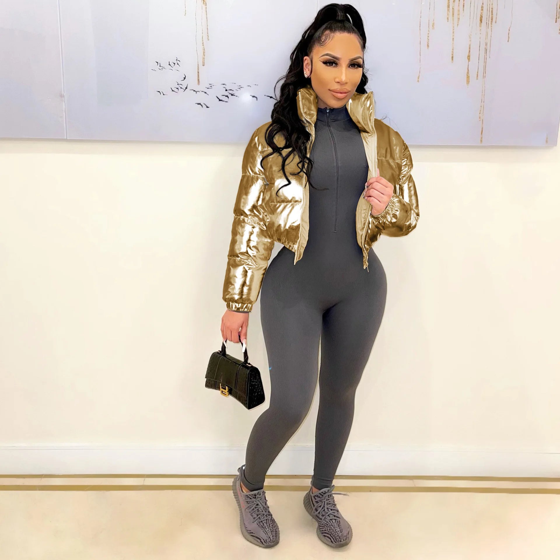Bold, futuristic, and built for cold days — this silver cropped bubble jacket brings statement shine with a cosy, padded feel. The thick polyester construction offers warmth without bulk, while the cropped length and stand-up collar keep the silhouette sharp and modern. Designed with a regular fit, it’s easy to layer while still turning heads.
